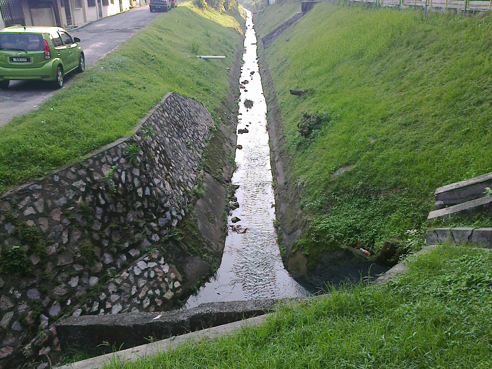 Anyway, a large, concrete lined storm retention drain runs behind David's home in Section 12 Petaling Jaya and he has been hammering away at the Petaling Jaya City Council that they should have made it a swale, instead of an all concrete lined storm retention drain.